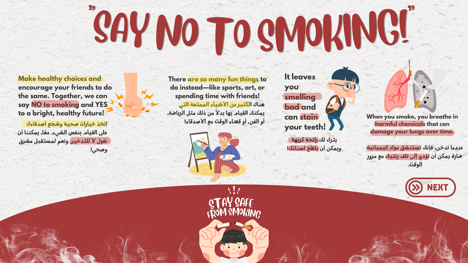 Whether you prefer Arabic or English, our game speaks your language. Stay Safe is fully bilingual, ensuring that a diverse range of players can access life-changing information without any language barriers.
